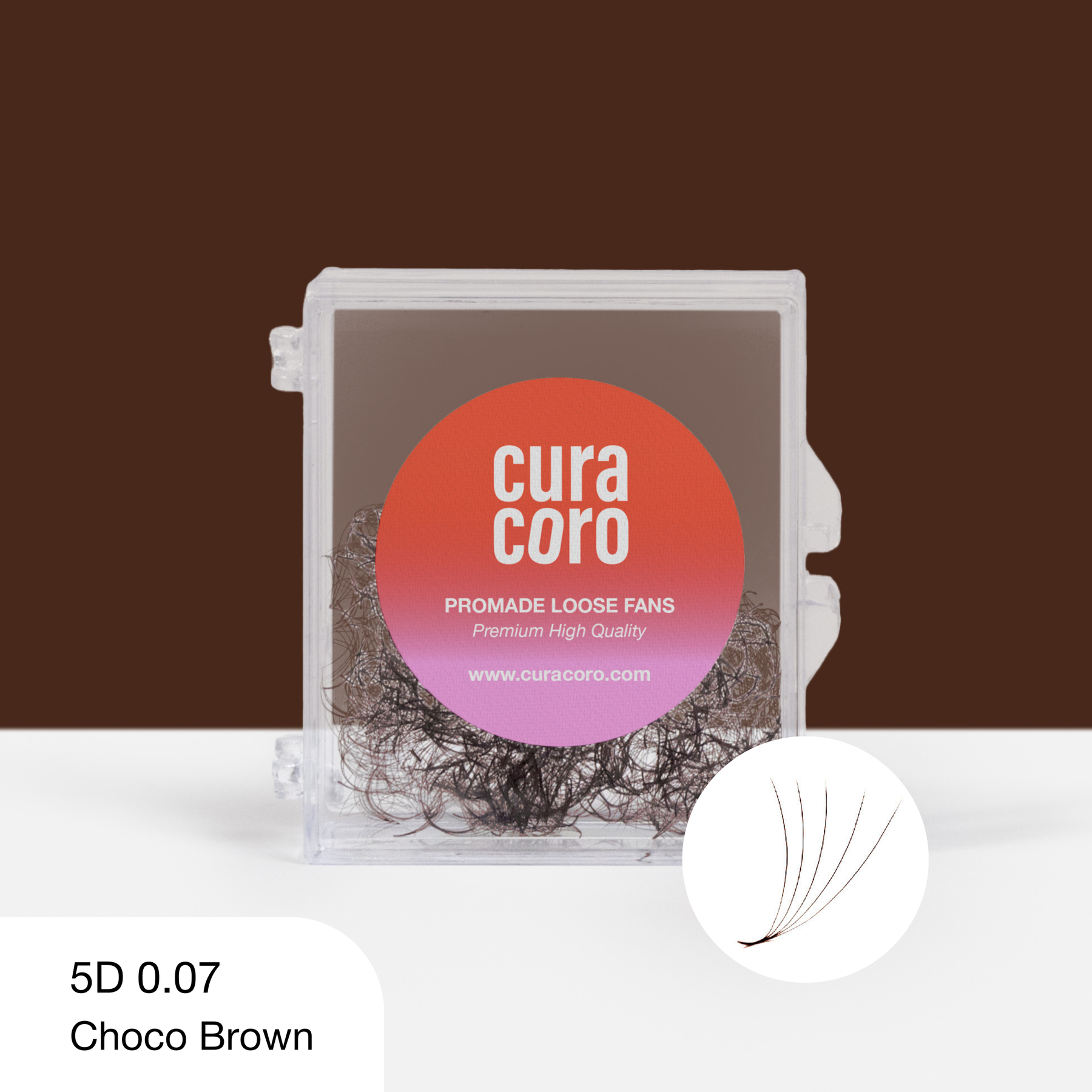 Save time while maintaining consistent lash quality with our Brown Promade Fans Loose 5D 0.07 in Caramel Brown. Designed for professional lash artists, these pre-made fans deliver soft volume with a warm hazel caramel brown finish, creating natural dimension without the intensity of jet black lashes.