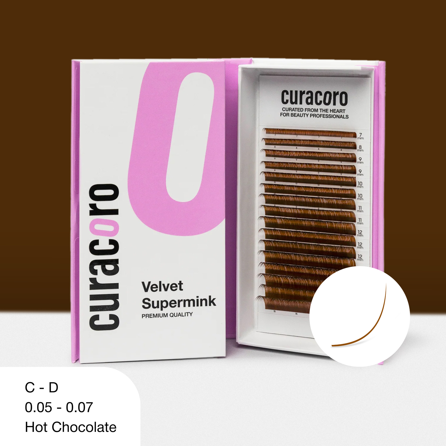 Enhance your lash artistry with Velvet Super Mink 0.07 in Hot Chocolate Brown, a warm, medium-deep brown that delivers the definition of dark lashes with a softer, more natural finish. Ideal for creating bold yet refined lash sets with subtle warmth and depth.