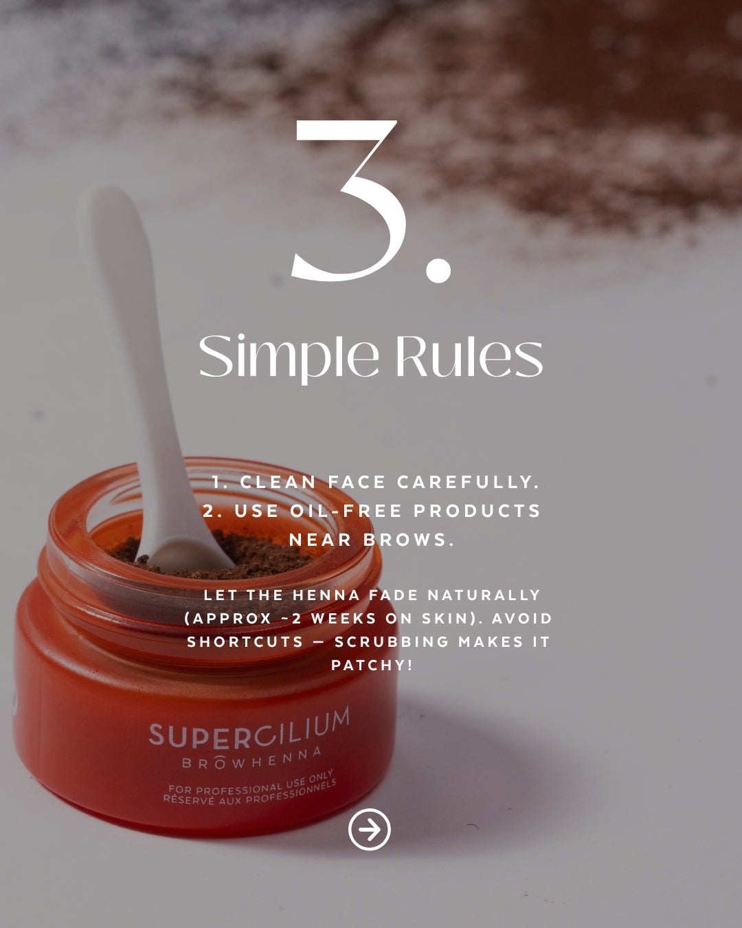 Pro Tip: Difficulties with getting a long-lasting Brow henna skin stain? Try our Color Booster in combination with Color Developer. This trick works especially well for oily skin.