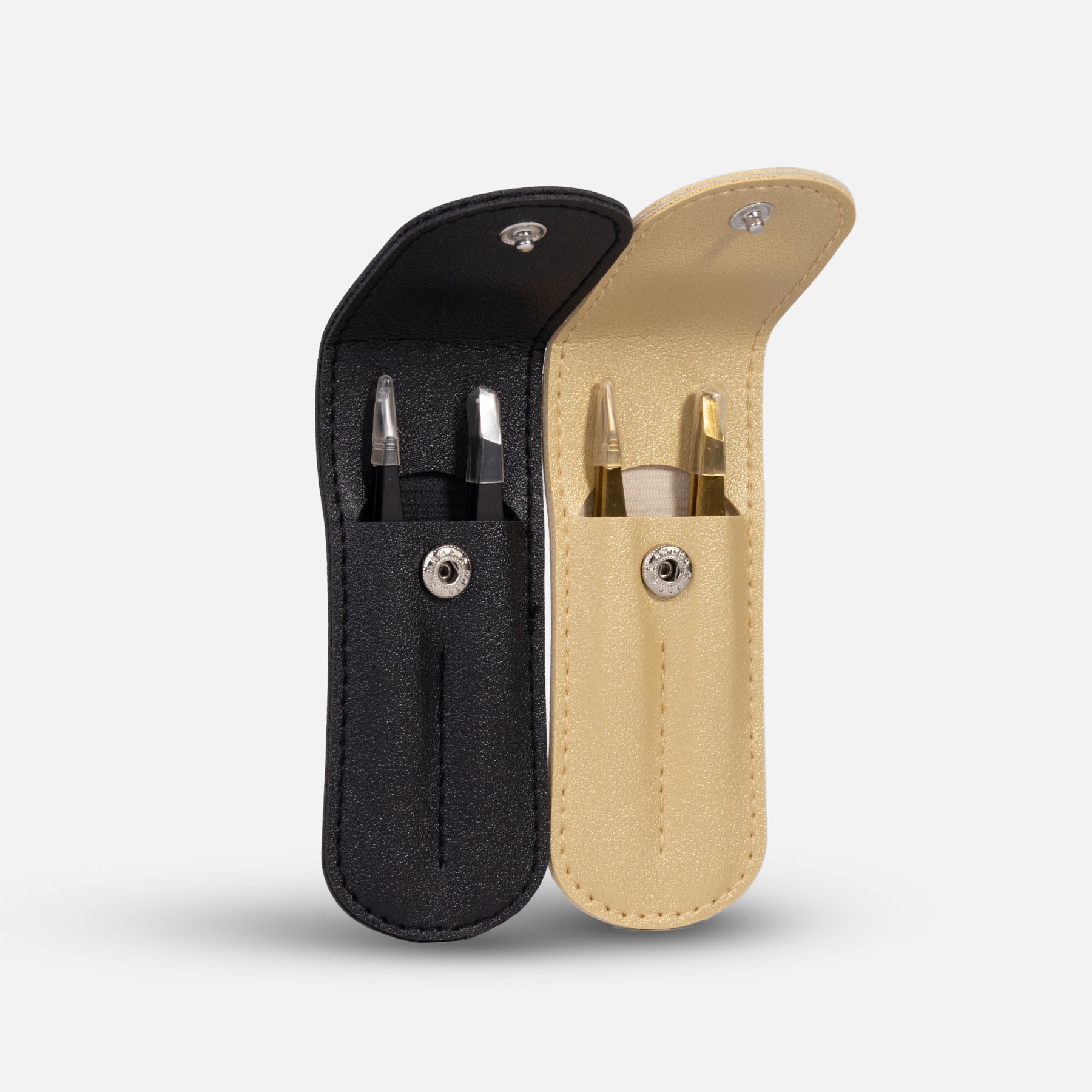 Two essential tweezers. One flawless brow routine. Clean, precise, and always protected.