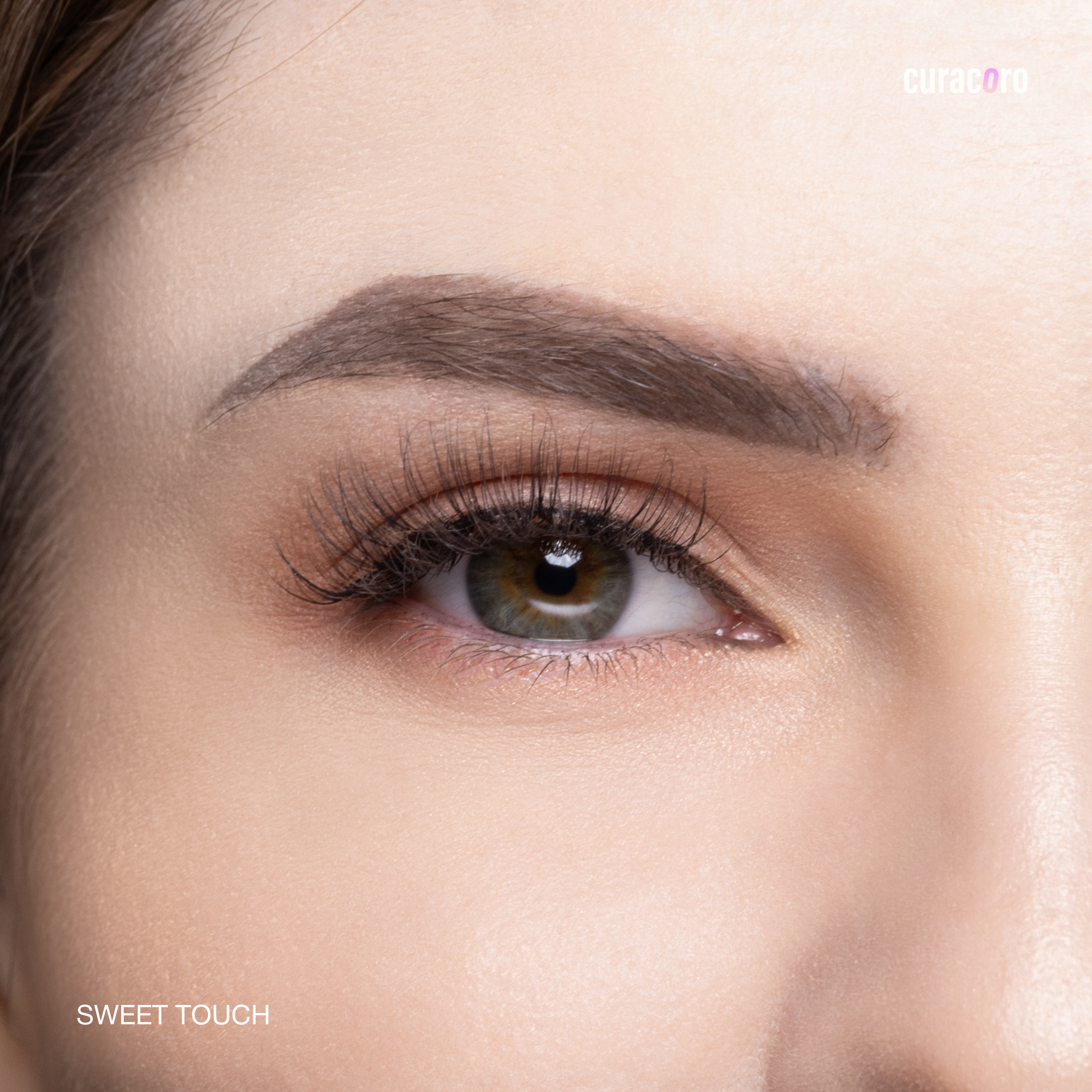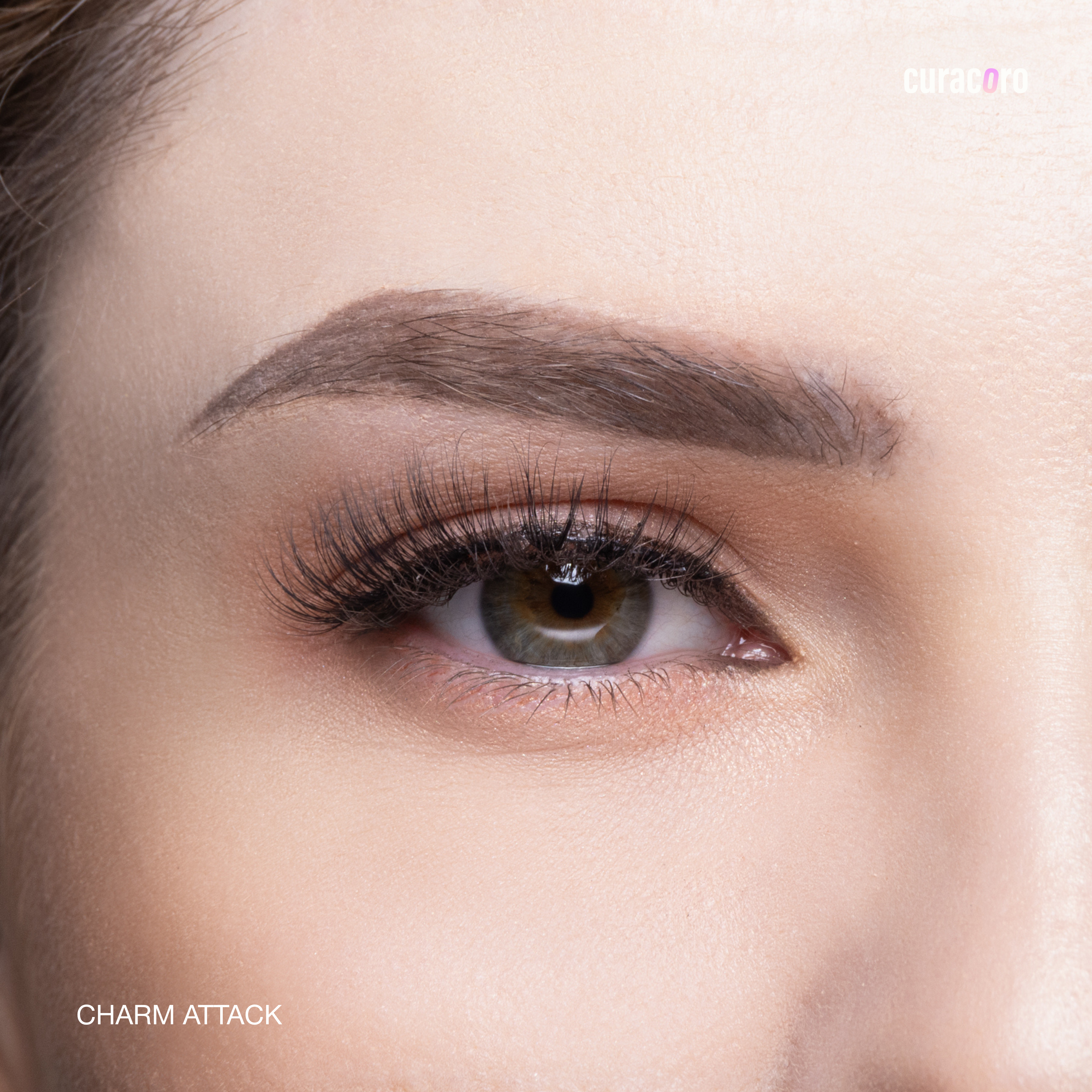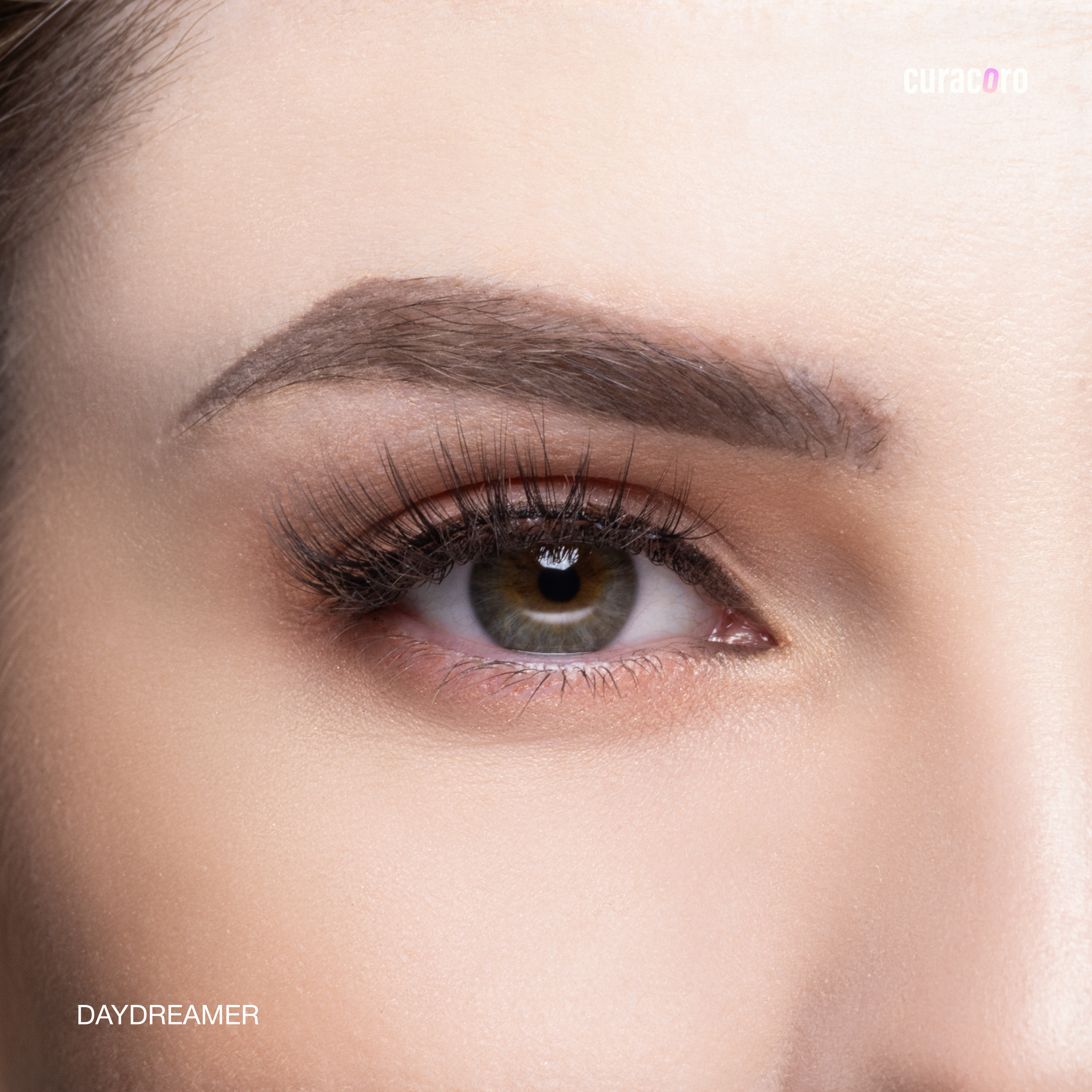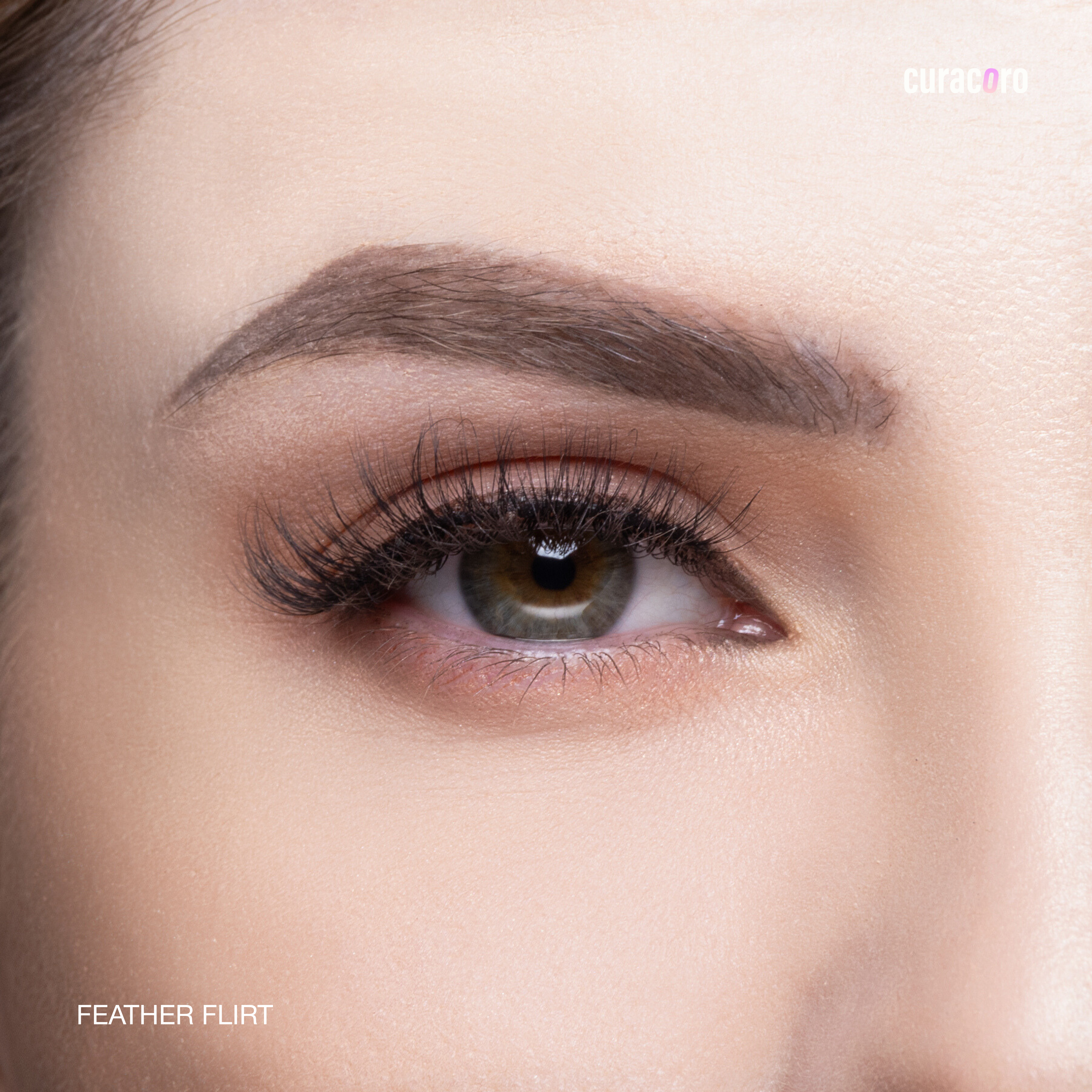 Curacoro eyelash packaging with lashes inside on a white background