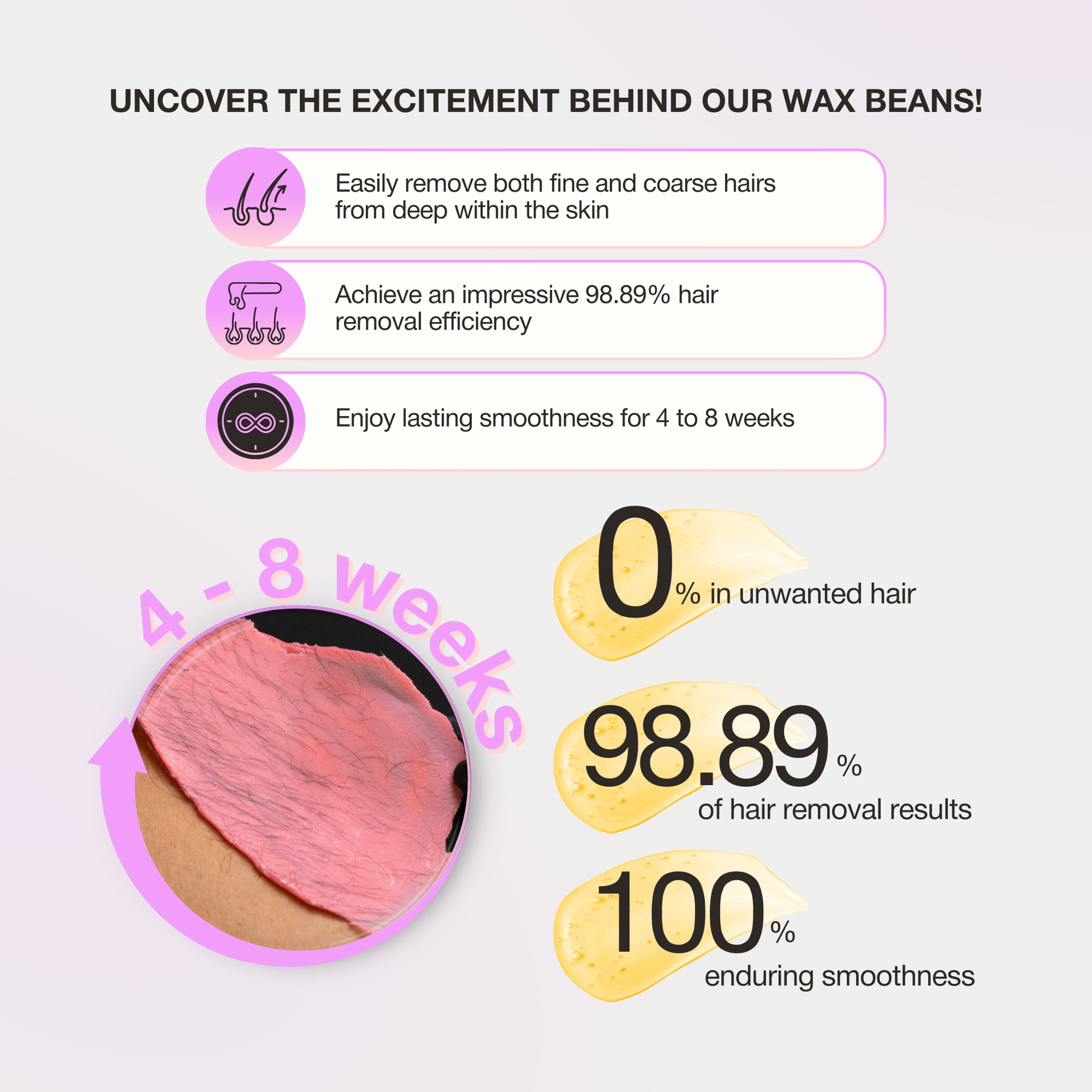 - No-Strip Removal: Peel-off film wax—no fabric or resin strips needed.